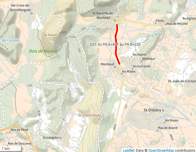 L’entreprise Santerne Mediterranée doit réaliser sur la RM21 entre Montaud et Saint-Bauzille-de-Montmel, des travaux de tirage de câble optique, ouverture de chambre télécoms, pose et raccordement de boîte optique, pour le compte de la société XPFIBRE.