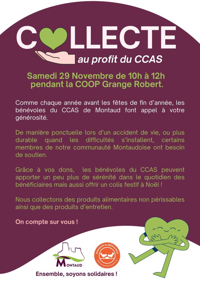 COLLECTE AU PROFIT DU CCAS / SAMEDI 29 NOVEMBRE DE 10H A 12H / GRANGE ROBERT