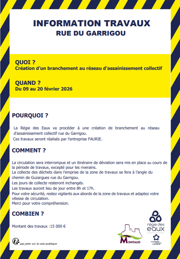 Travaux Rue du Garrigou / 09 au 20 février 2026