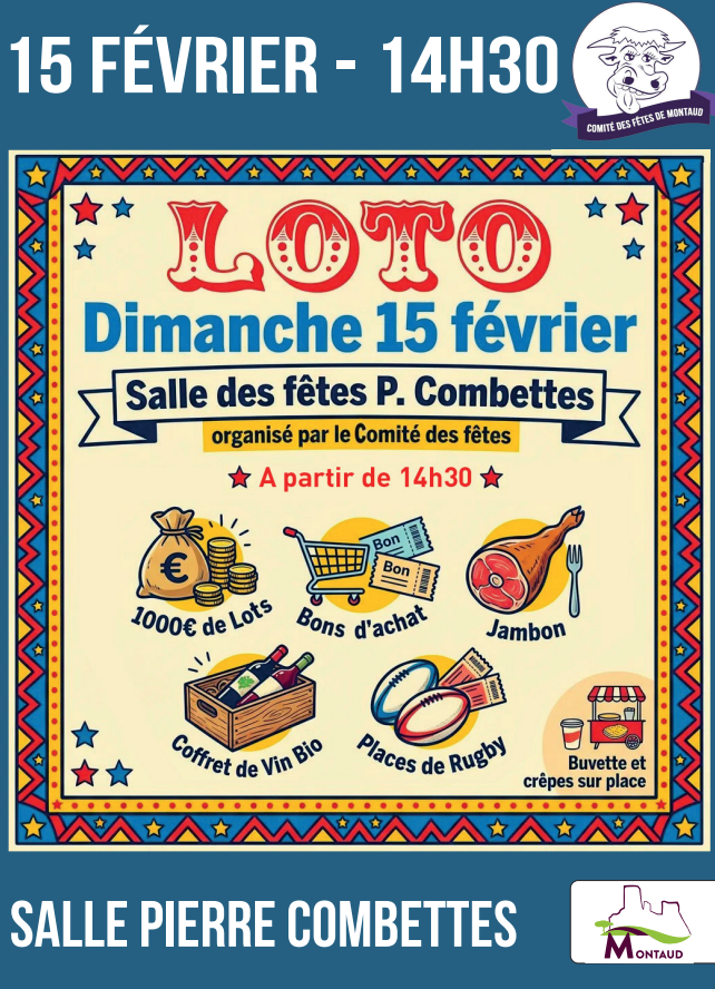 Loto du comité des fêtes / Dimanche 15 février 2026 à 14h30 / Salle Pierre Combettes